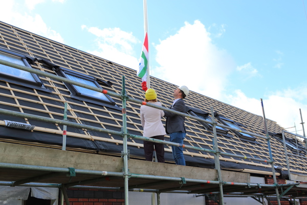 Viering hoogste punt bouw 14 woningen Sint Luciastraat